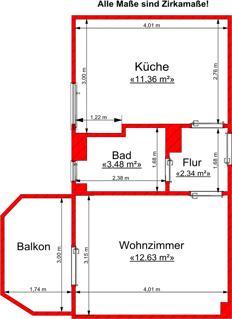 1-Raum-Wohnung im Stadtzentrum mit großem Balkon
