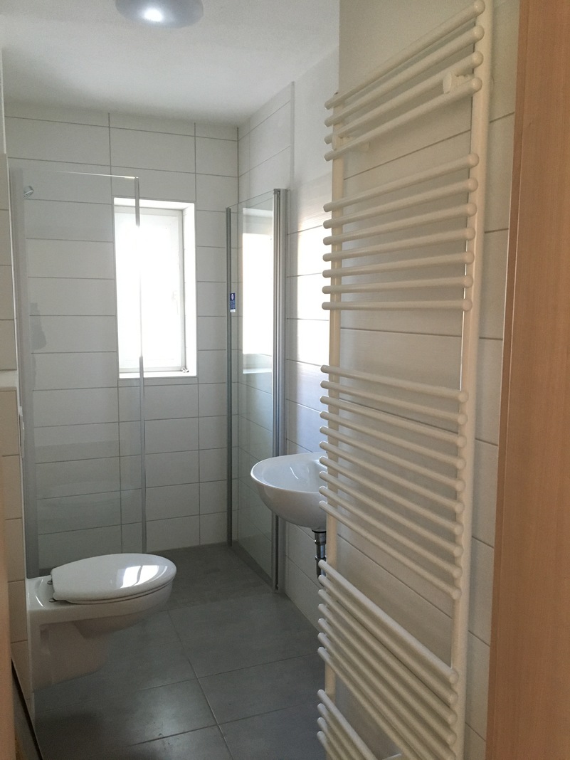 Das Bad ist mit einer bodengleiche Dusche ausgestattet. Alle Räume sind mit neuen Innentüren sowie einen hochwertigen Vinyl-Design-Fußbodenbelag ausgestattet.