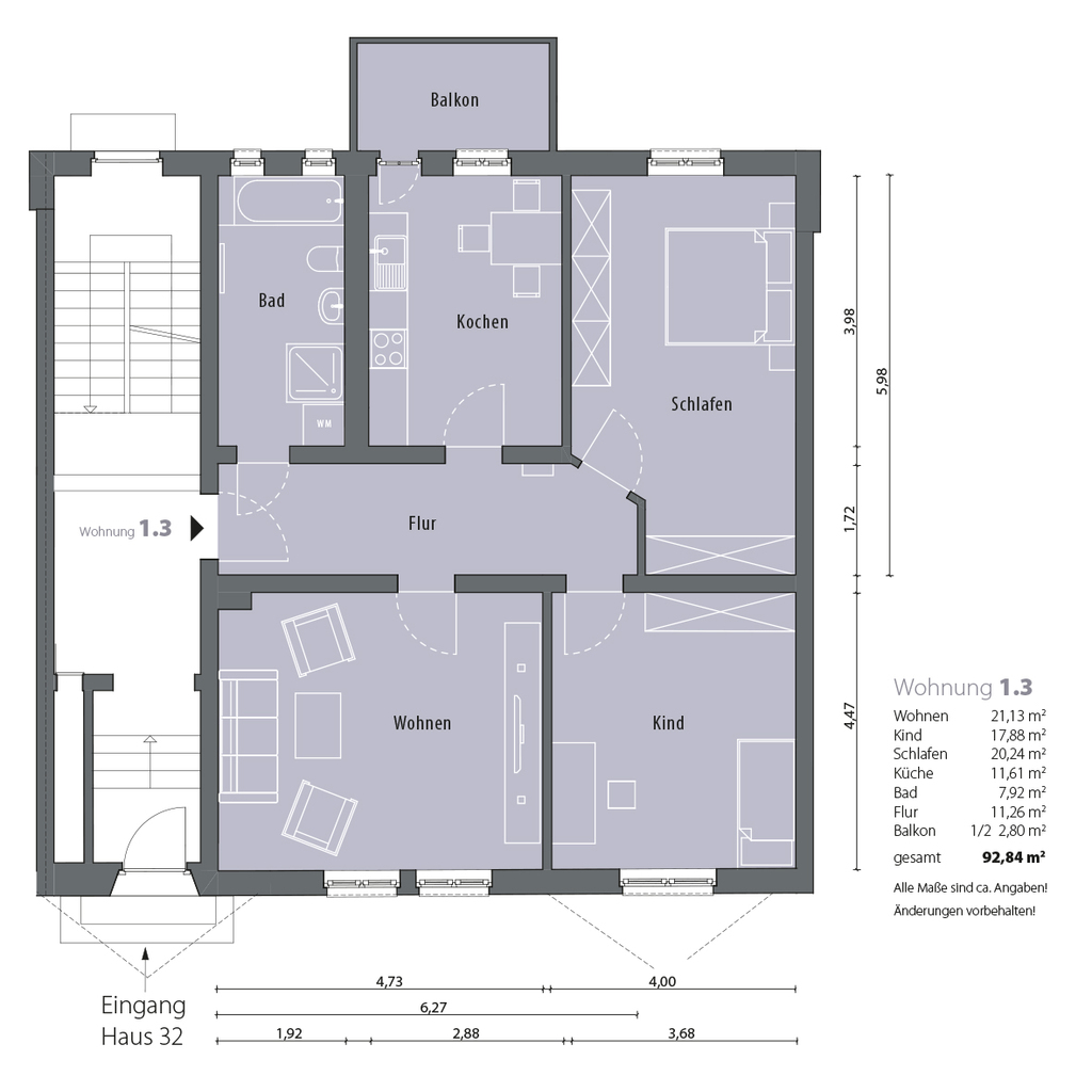 3-Raum-Wohnung im sanierten Albau – Bad mit Wanne und Dusche