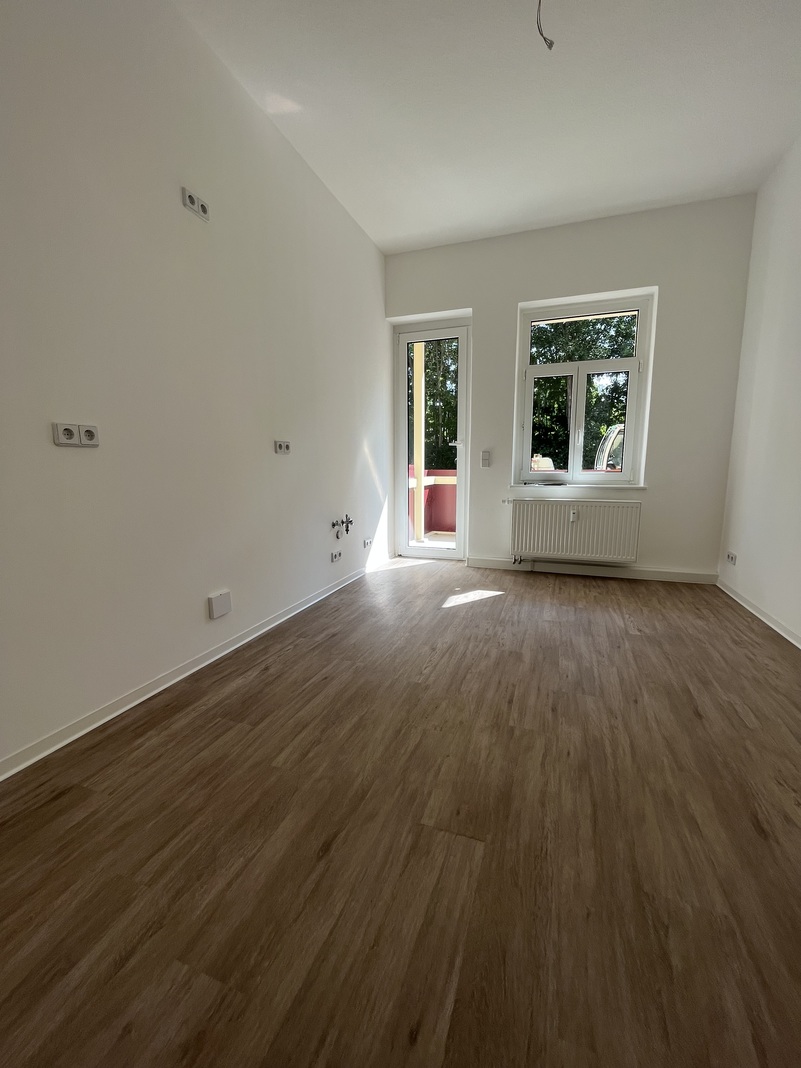 Diese großzügig geschnittene 3-Raum-Wohnung im Altbau in der Stadtmitte Geras wurde 2023 umfangreich saniert. Diese Wohnung überzeugt mit ihrer großzügig gestalteten Küche, die zukünftig genügend Platz für einen Wohn- und Essbereich bietet. Von der Küche aus gelangen Sie auf den neu angebauten Balkon. Alle Räume wurden mit neuen Innentüren und einem hochwertigen Vinyl-Design-Belag ausgestattet. Die großzügig geschnittenen Grundrisse der Wohn- und Schlafräume bieten viel Platz für die gesamte Familie. Das Tageslichtbad ist mit einer Dusche, Badewanne sowie modernen großformatigen Fliesen ausgestattet. Auch Ihre Waschmaschine findet hier genügend Platz.