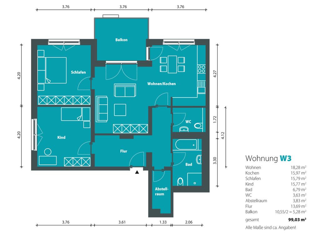 Diese helle, moderne 3-Raum-Wohnung überzeugt neben der kompletten Barrierefreiheit mit einem schönen lichtdurchfluteten Wohnzimmer und einem großen überdachten Balkon. Das Bad ist mit modernen, großformatigen Fliesen, einer bodengleichen Dusche und einer Wanne ausgestattet. Des Weiteren verfügt die Wohnung über einen separaten Abstellraum.