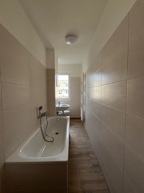 Diese gemütliche 2-Raum-Wohnung kann voraussichtlich ab Juni 2026 besichtigt werden. Das Tageslichtbad ist mit einer Wanne sowie mit modernen großformatigen Fliesen ausgestattet. In allen Räumen wurden neue Türen sowie ein hochwertiger Vinyl-Design-Belag eingebaut.