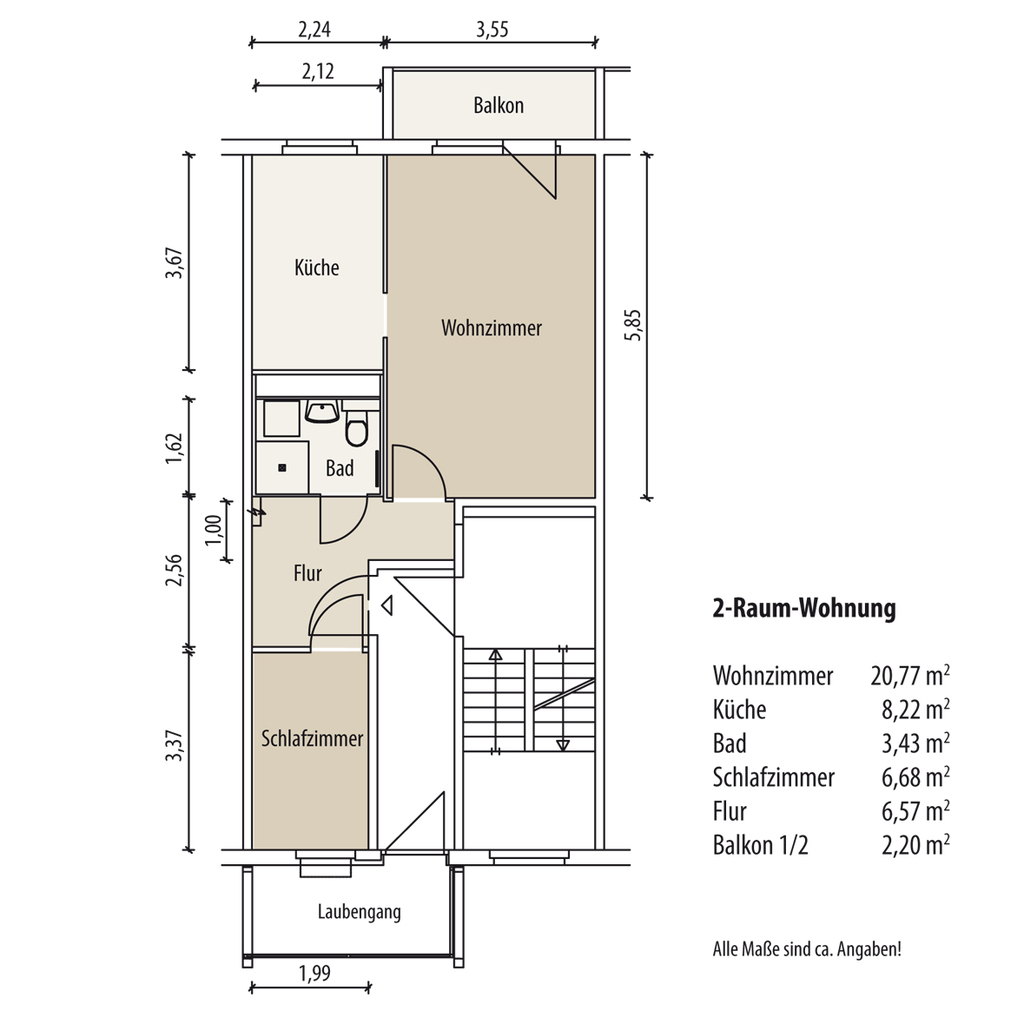Sanierte 2-Raum-Wohnung mit Dusche und Balkon