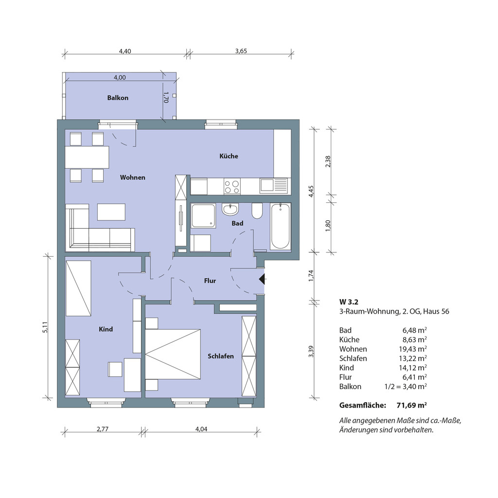 Diese 3-Raum-Wohnung entsteht im 2. Obergeschoss des Wohnhauses. Im großen Bad werden eine bodengleichen Dusche, eine Badewanne und moderne großformatige Fliesen eingebaut. Vom offen gestalteten Wohn- und Kochbereich gelangen Sie auf den großen Balkon. Alle Räume werden mit einem hochwertigen Vinyl-Design-Fußbodenbelag ausgestattet. Die historische Wohnungseingangstür wird aufgearbeitet. Genügend Stauraum finden Sie außerdem in Ihrem eigenen Keller- und Dachbodenabteil.