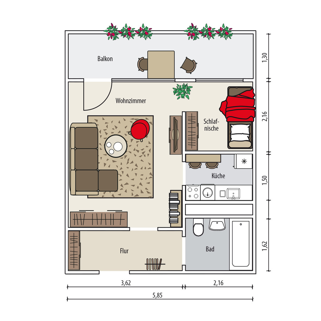 Tolle 1-Raum-Wohnung mit Dusche und großem Balkon