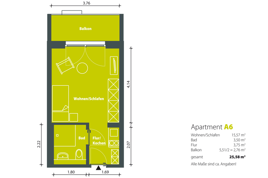 Wohnfläche: 1 Zimmer – 40,10 m²